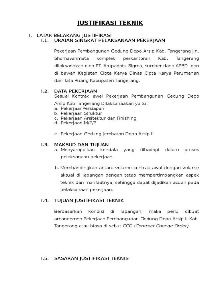 Beranda manajemen dan metode konstruksi manajemen konstruksi justifikasi teknis cco (contract change order). Justifikasi teknis cco.2 dan perpanjangan waktu. Tidak bisa menjustifikasi seseorang hanya melihat pada satu kesempatan saja, karena cara yang demikian itu tidak merepresentasikan. Lembar pengesahan justifikasi teknik rehab jembatan gantung blang teurakan kec. Download & view justifikasi teknis manggar as pdf for free.
